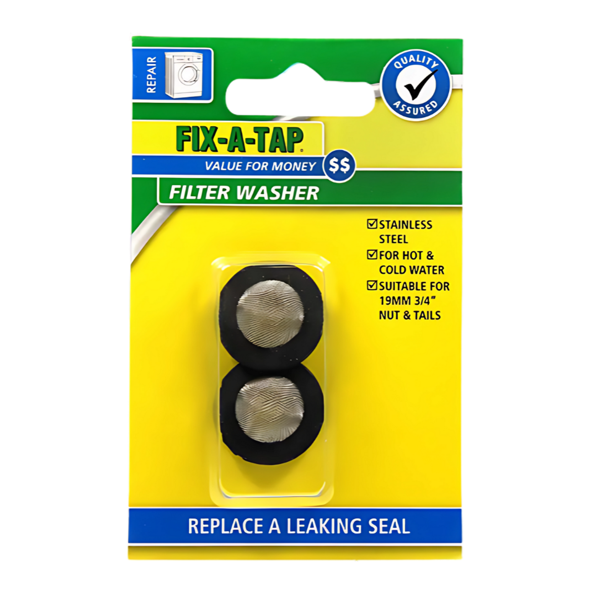 Suitable for both hot and cold water, these washers fit standard 19mm (¾″) nut and tail connections, making them compatible with most common inlet hoses.